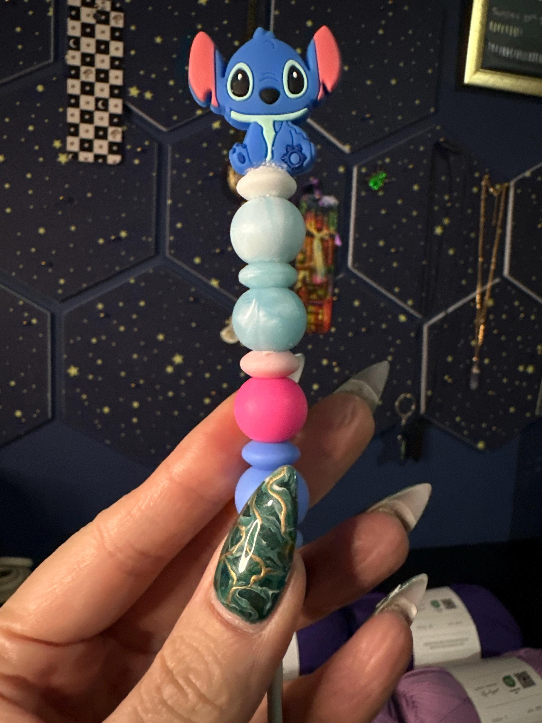 Add a little fun and personality to your crochet tools with these silicone bead crochet hook toppers, inspired by the heartwarming charm and playful characters of the Lilo & Stitch universe.